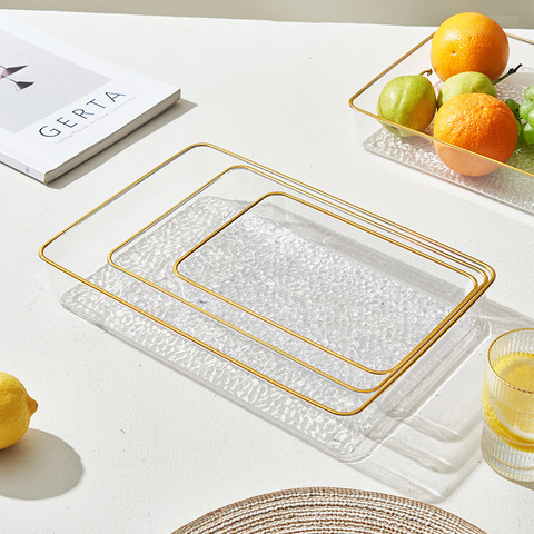 Plato de fruta con borde chapado en oro, almacenamiento multifuncional transparente, nuevo hogar, sala de estar, mesa de café, almacenamiento de tazas secas
